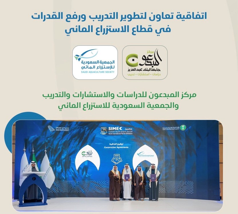 اتفاقية تعاون تجمع الجمعية السعودية للاستزراع المائي و مركز المبدعون للدراسات والاستشارات والتدريب لتطوير برامج متخصصة وتمكين الكوادر و دعم منظومة الاستزراع المائي بأثر مستدام هدف